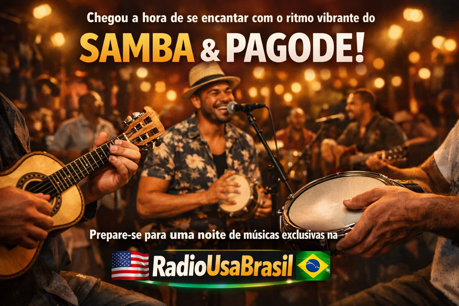 Aproveite o Samba e Pagode na rádio brasileira em sua rotina. De fato, um bom pagode alivia a saudade de casa. Por isso, nossa grade acompanha você no trabalho ou no lazer. Então, sintonize agora a maior resenha brasileira da América. O som do cavaco e do pandeiro traz o calor do Brasil para o frio dos EUA. Certamente, você se sentirá em casa com a nossa seleção especial.